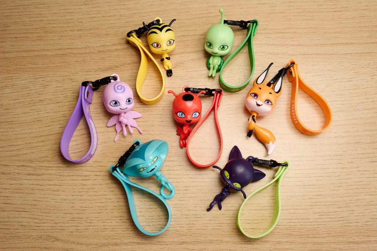 В коллекцию вошли семь брелоков с квами из «Леди Баг и Супер-Кот». В линейке представлены Плагг, Сасс, Тикки, Нууру, Вэйзз, Триккс и Поллен.