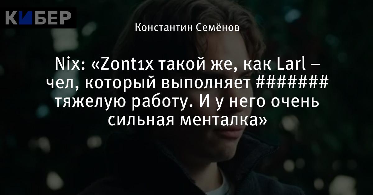 Nix: «Zont1x такой же, как Larl – чел, который выполняет ####### тяжелую работу. И у него очень сильная менталка»