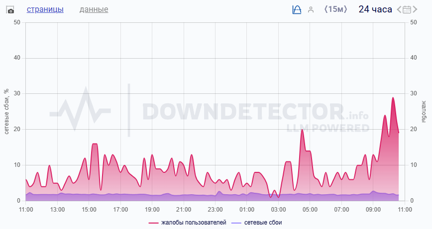 По данным сайтов «Сбой.рф» и Downdetector.su, за последний час поступают сообщения о проблемах в работе Билайна из регионов: