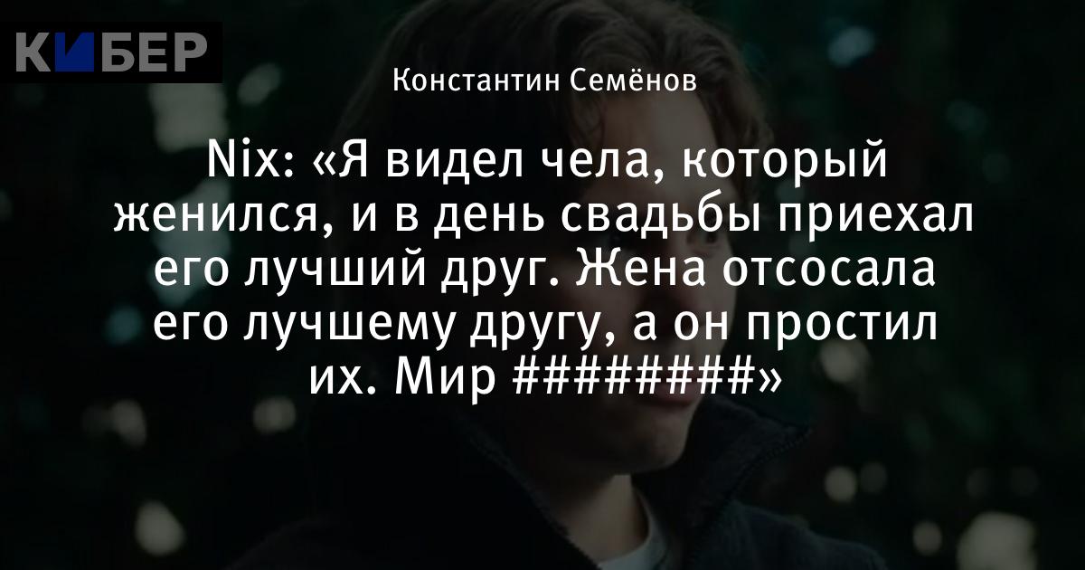 Nix: «Я видел чела, который женился, и в день свадьбы приехал его лучший друг. Жена отсосала его лучшему другу, а он простил их. Мир ########»