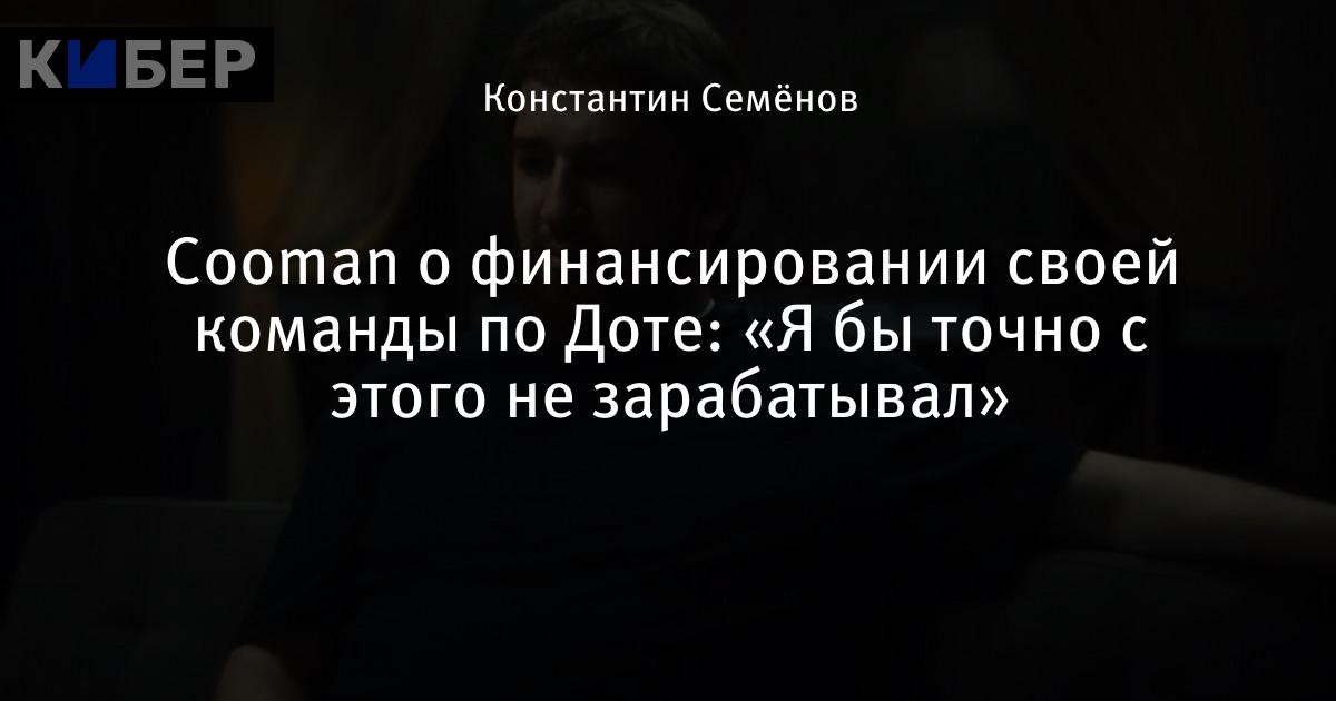 Cooman о финансировании своей команды по Доте: «Я бы точно с этого не зарабатывал»