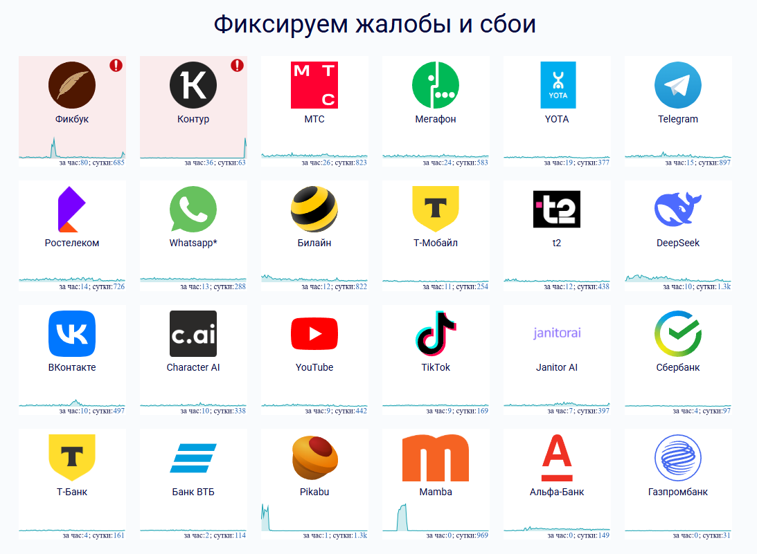 Среди сервисов и приложений утром, 22 августа, массовые сбои наблюдаются в работе «Контура».