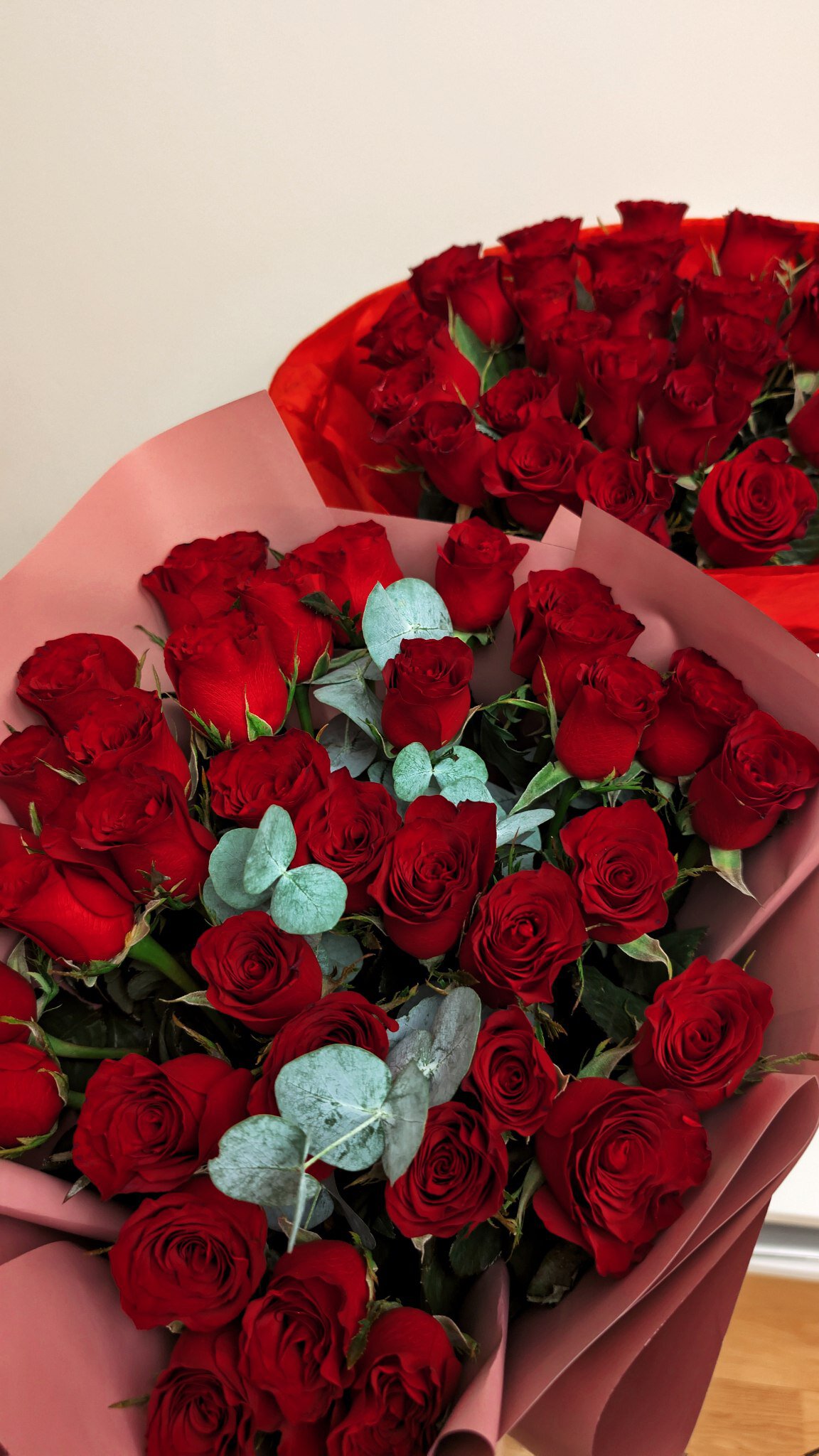 «Только что курьер привез вот такой прекрасный букет! Огромное спасибо 😳 У меня что, день рождения, о котором я не в курсе?