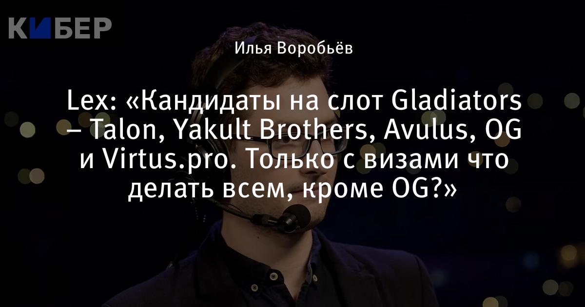 Lex: «Кандидаты на слот Gladiators – Talon, Yakult Brothers, Avulus, OG и Virtus.pro. Только с визами что делать всем, кроме OG?»