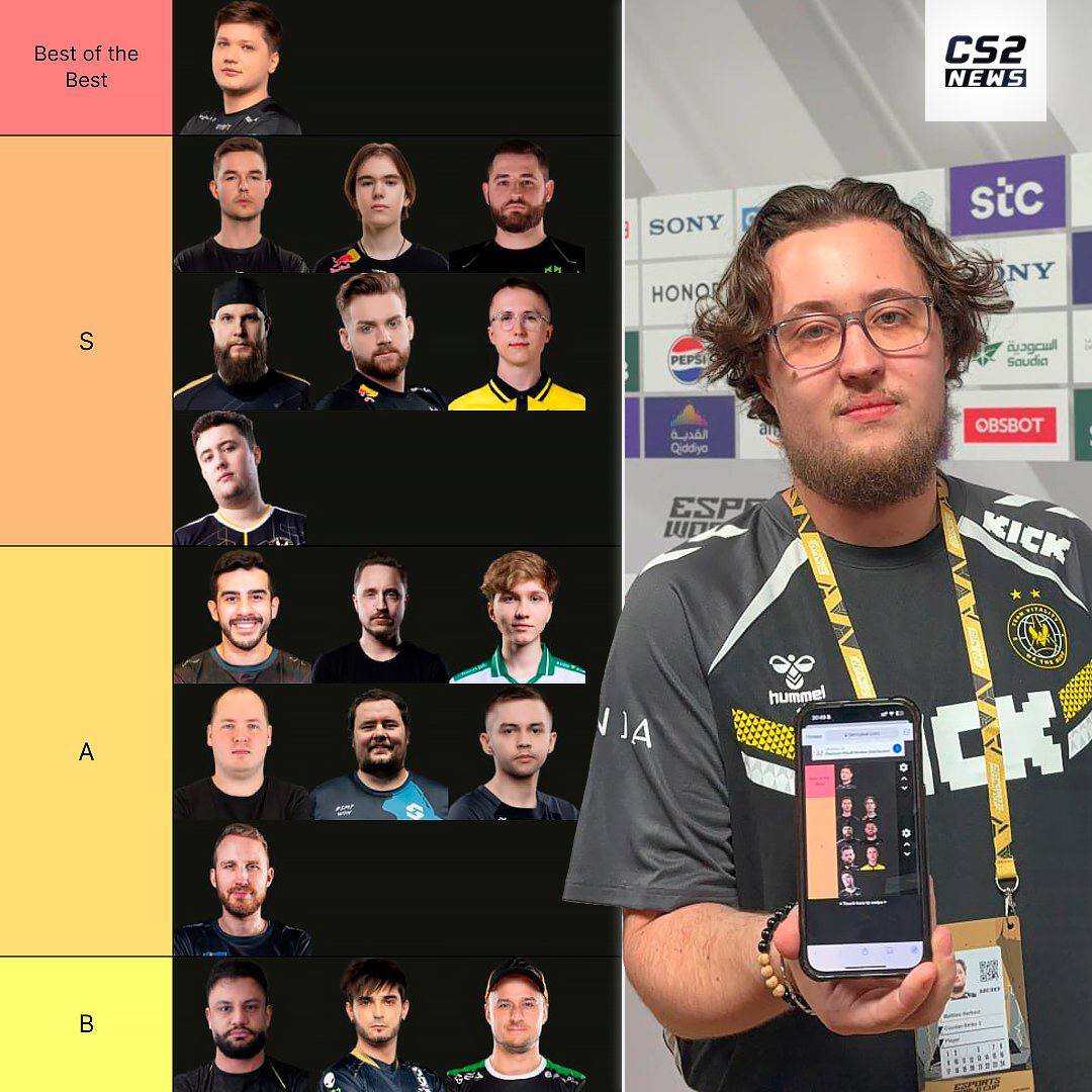 В «лучшие из лучших» Матье «Zywoo» Эрбо отнес только Александра «S1mple» Костылев. Себя, Данила «Donk» Крышковца, Николу «Niko» Ковача, Николая «Device» Ридтца и еще 4 игрока – в S-тир.