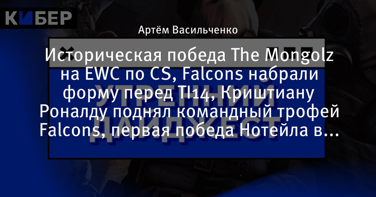 Историческая победа The Mongolz на EWC по CS, Falcons набрали форму перед TI14, Криштиану Роналду поднял командный трофей Falcons, первая победа Нотейла в роли тренера и другие новости утра