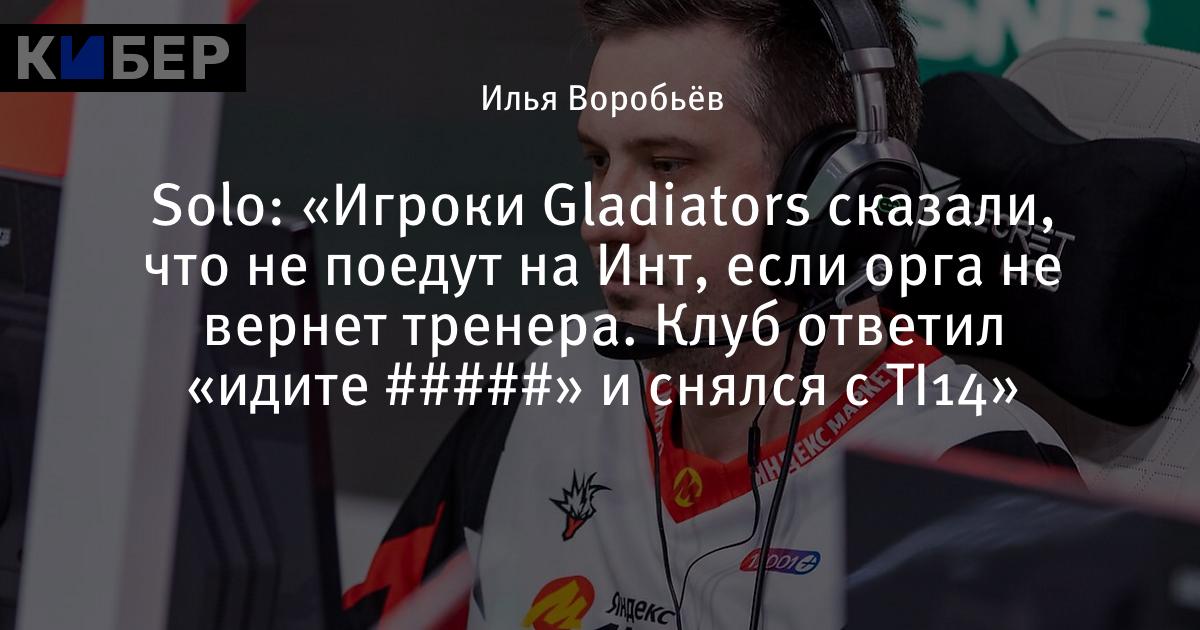Solo: «Игроки Gladiators сказали, что не поедут на Инт, если орга не вернет тренера. Клуб ответил «идите #####» и снялся с TI14»