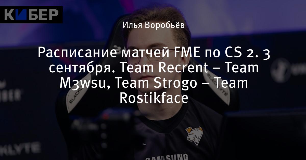 Расписание матчей FME по CS 2. 3 сентября. Team Recrent – Team M3wsu, Team Strogo – Team Rostikface