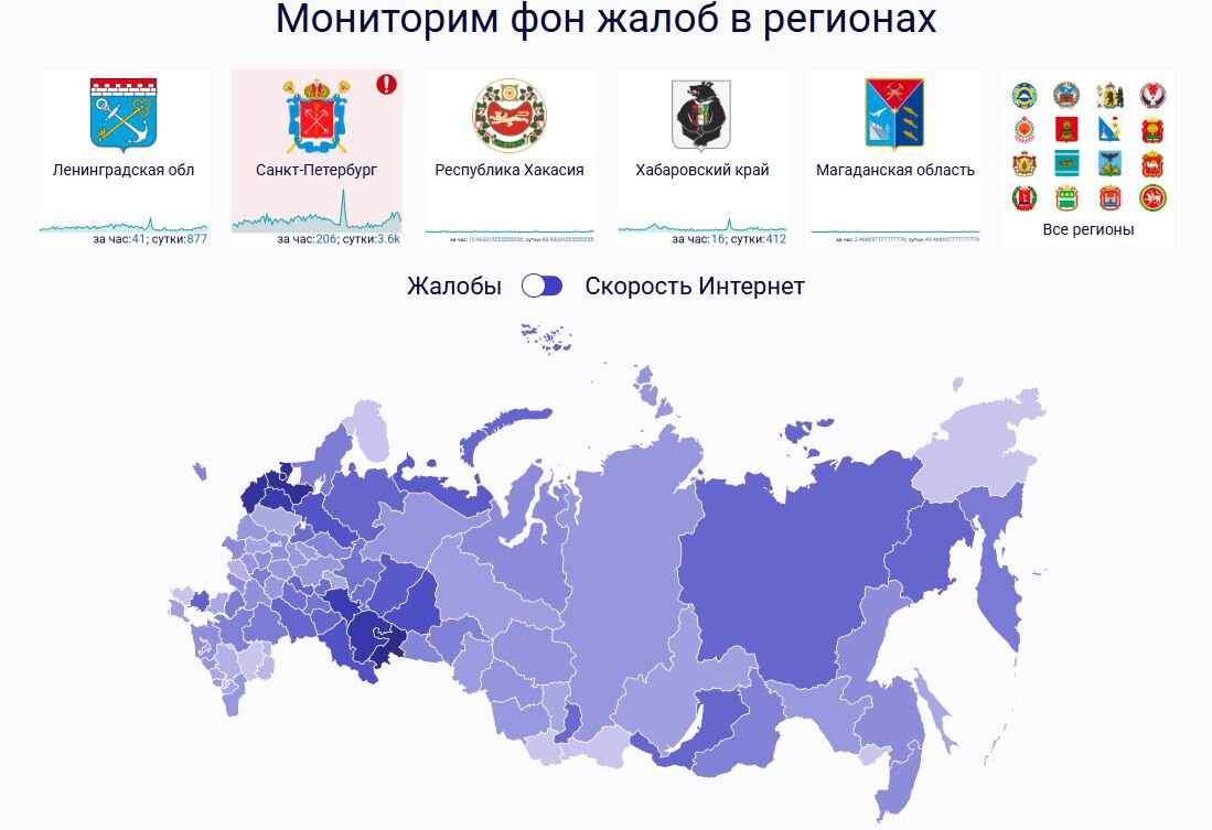 - Санкт Петербург (206 жалоб за последний час);