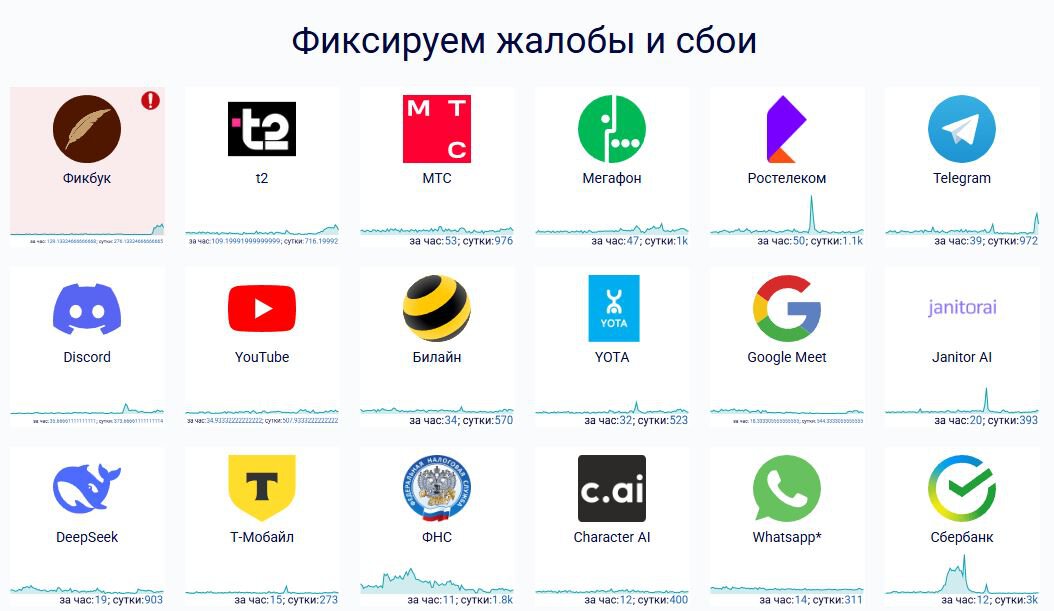 Среди сервисов и приложений утром, 26 августа, массовые сбои наблюдаются в работе «Фикбука» и Telegram.