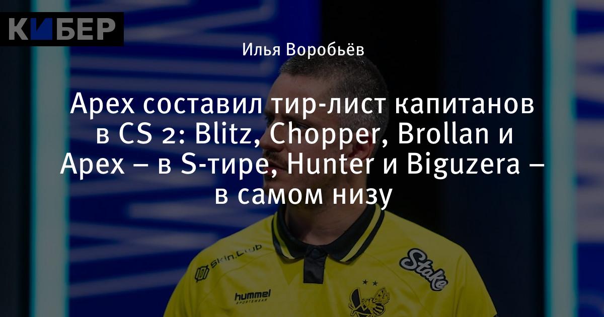 Apex составил тир-лист капитанов в CS 2: Blitz, Chopper, Brollan и Apex – в S-тире, Hunter и Biguzera – в самом низу