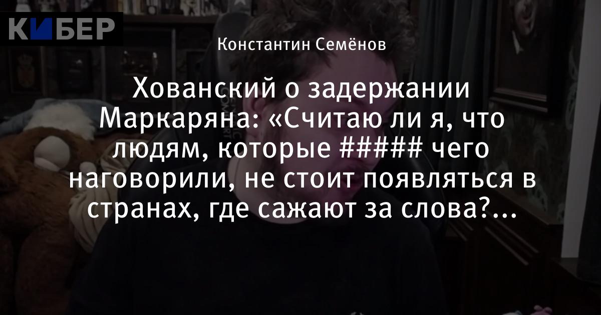 Хованский о задержании Маркаряна: «Считаю ли я, что людям, которые ##### чего наговорили, не стоит появляться в странах, где сажают за слова? Определенно»