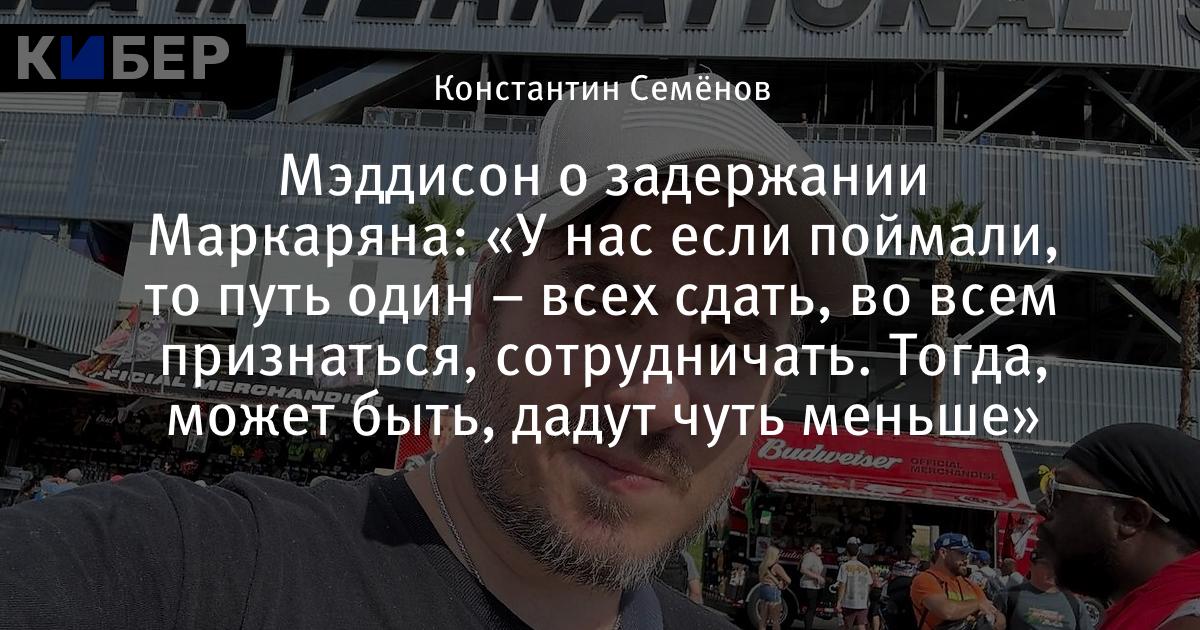 Мэддисон о задержании Маркаряна: «У нас если поймали, то путь один – всех сдать, во всем признаться, сотрудничать. Тогда, может быть, дадут чуть меньше»