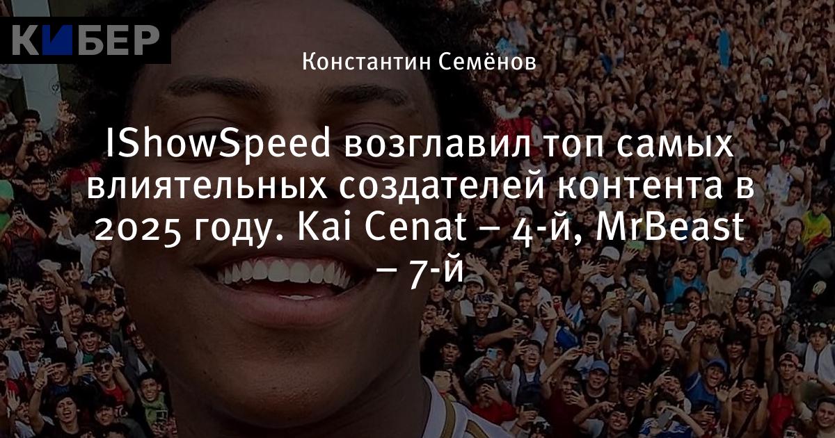 IShowSpeed возглавил топ самых влиятельных создателей контента в 2025 году. Kai Cenat – 4-й, MrBeast – 7-й