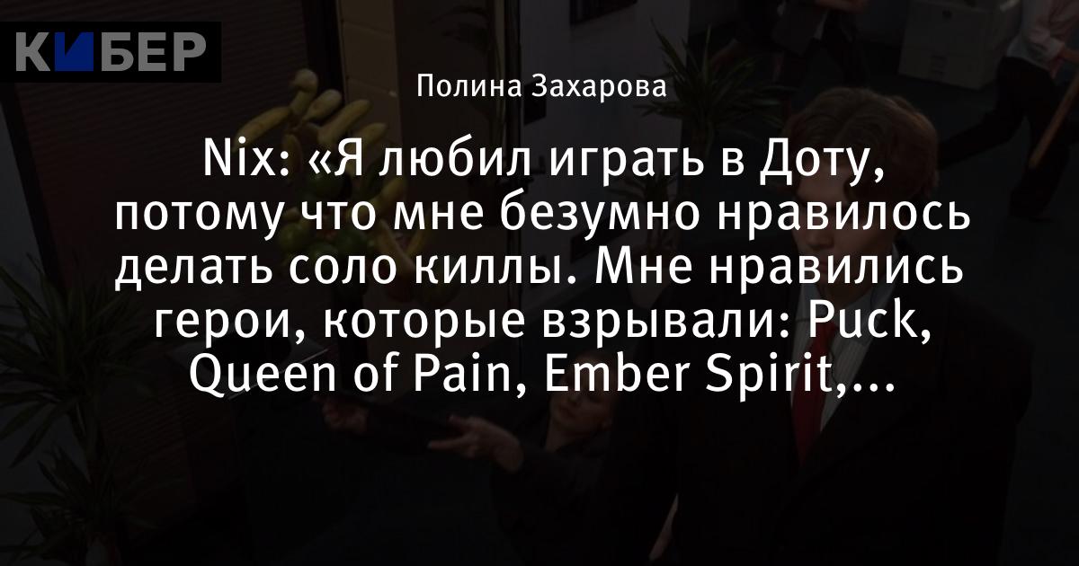 Nix: «Я любил играть в Доту, потому что мне безумно нравилось делать соло киллы. Мне нравились герои, которые взрывали: Puck, Queen of Pain, Ember Spirit, Faceless Void»