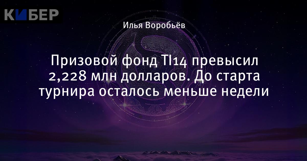 Призовой фонд TI14 превысил 2,228 млн долларов. До старта турнира осталось меньше недели