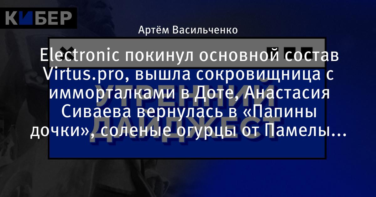 Electronic покинул основной состав Virtus.pro, вышла сокровищница с имморталками в Доте, Анастасия Сиваева вернулась в «Папины дочки», соленые огурцы от Памелы Андерсон и другие новости утра