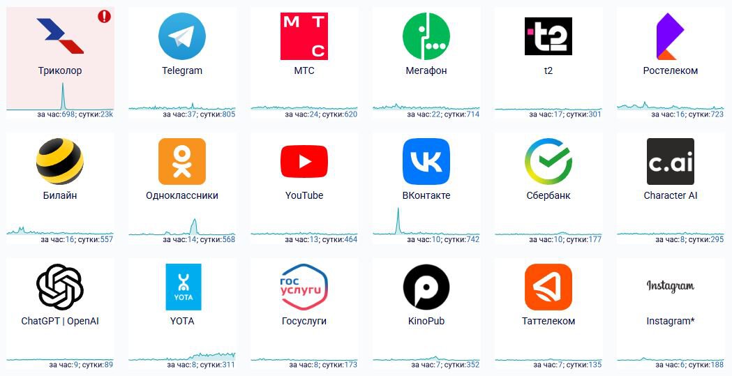 Среди сервисов и приложений утром, 30 августа, массовые сбои наблюдаются в работе «Триколора» и Telegram.
