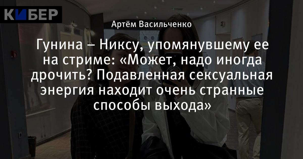 Гунина – Никсу, упомянувшему ее на стриме: «Может, надо иногда дрочить? Подавленная сексуальная энергия находит очень странные способы выхода»