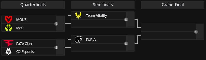Mouz в первом четвертьфинале сыграют с M80. Faze во втором матче плей-офф сразится с G2.