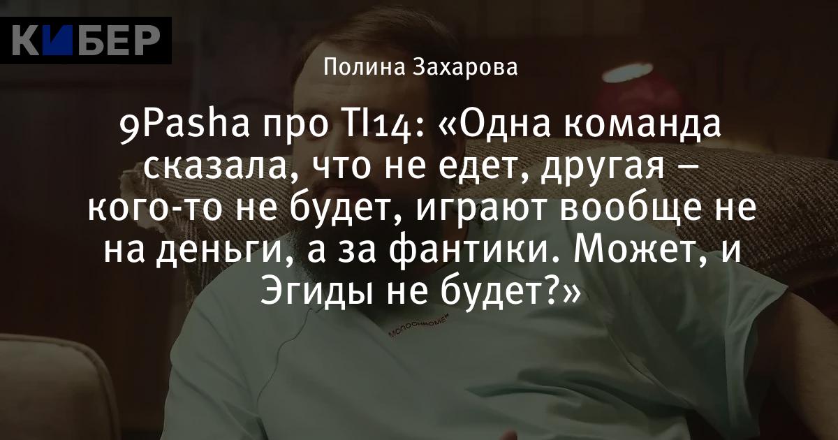 9Pasha про TI14: «Одна команда сказала, что не едет, другая – кого-то не будет, играют вообще не на деньги, а за фантики. Может, и Эгиды не будет?»