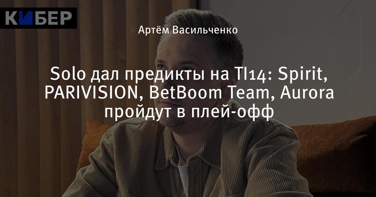 Solo дал предикты на TI14: Spirit, PARIVISION, BetBoom Team, Aurora пройдут в плей-офф