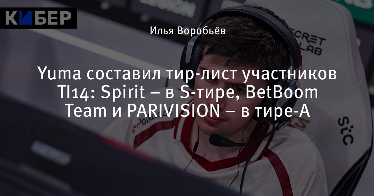 Yuma составил тир-лист участников TI14: Spirit – в S-тире, BetBoom Team и PARIVISION – в тире-A