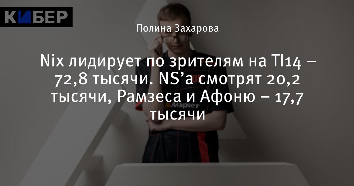 Nix лидирует по зрителям на TI14 – 72,8 тысячи. NS’а смотрят 20,2 тысячи, Рамзеса и Афоню – 17,7 тысячи