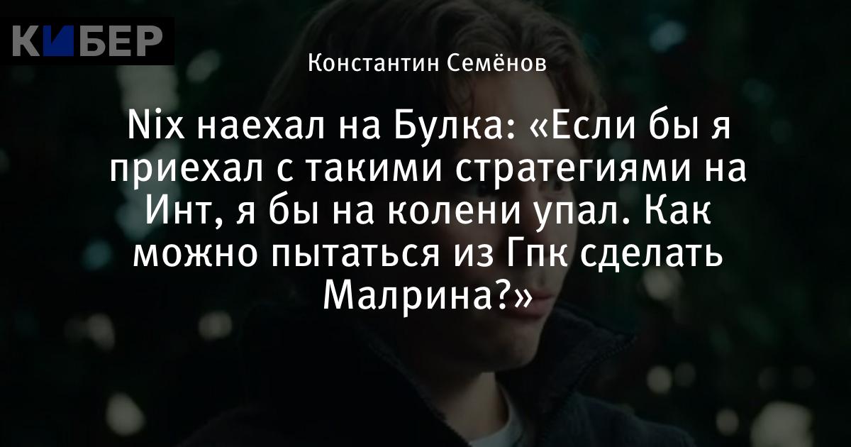 Nix наехал на Булка: «Если бы я приехал с такими стратегиями на Инт, я бы на колени упал. Как можно пытаться из Гпк сделать Малрина?»
