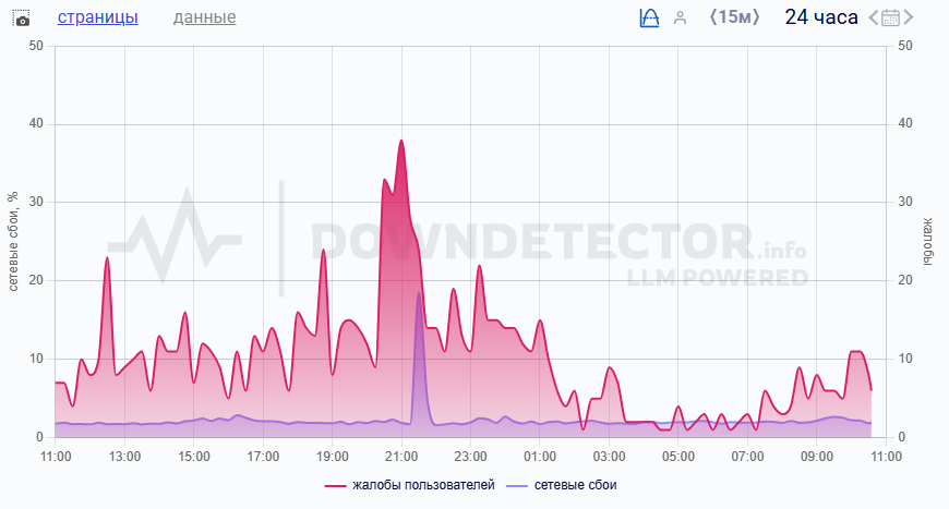 По данным сайтов «Сбой.рф» и Downdetector.su, за последний час поступают сообщения о проблемах в работе МТС из регионов:
