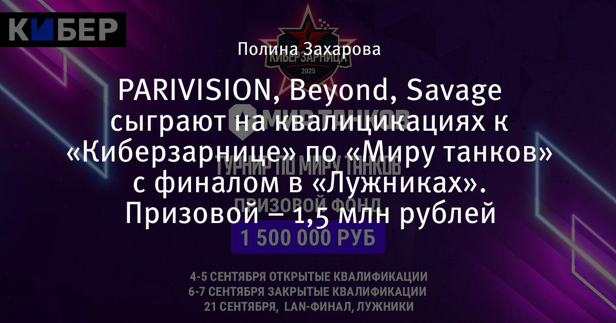 PARIVISION, Beyond, Savage сыграют на квалицикациях к «Киберзарнице» по «Миру танков» с финалом в «Лужниках». Призовой – 1,5 млн рублей