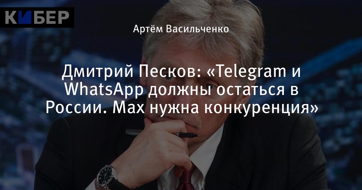 Дмитрий Песков: «Telegram и WhatsApp должны остаться в России. Max нужна конкуренция»