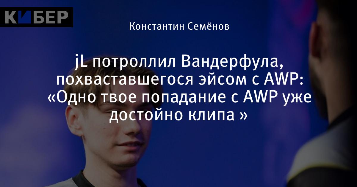 jL потроллил Вандерфула, похваставшегося эйсом с AWP: «Одно твое попадание с AWP уже достойно клипа 💀»