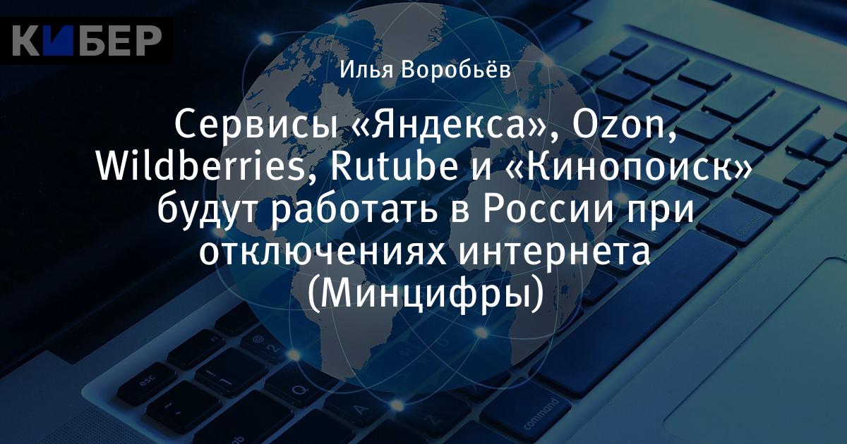 Сервисы «Яндекса», Ozon, Wildberries, Rutube и «Кинопоиск» будут работать в России при отключениях интернета (Минцифры)