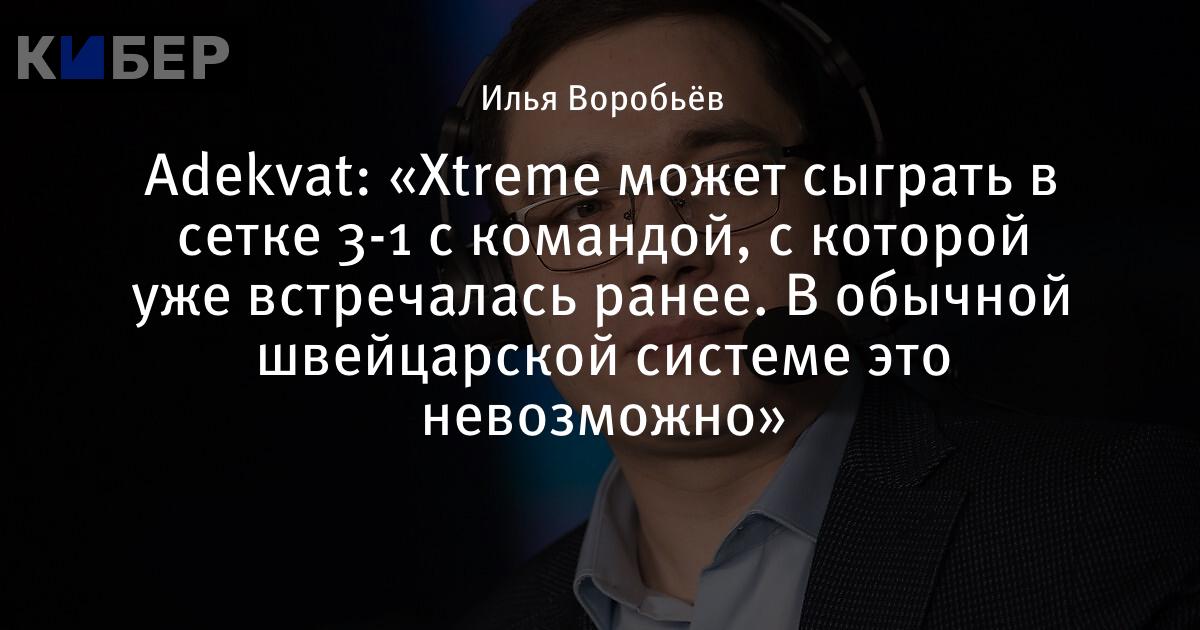Adekvat: «Xtreme может сыграть в сетке 3-1 с командой, с которой уже встречалась ранее. В обычной швейцарской системе это невозможно»