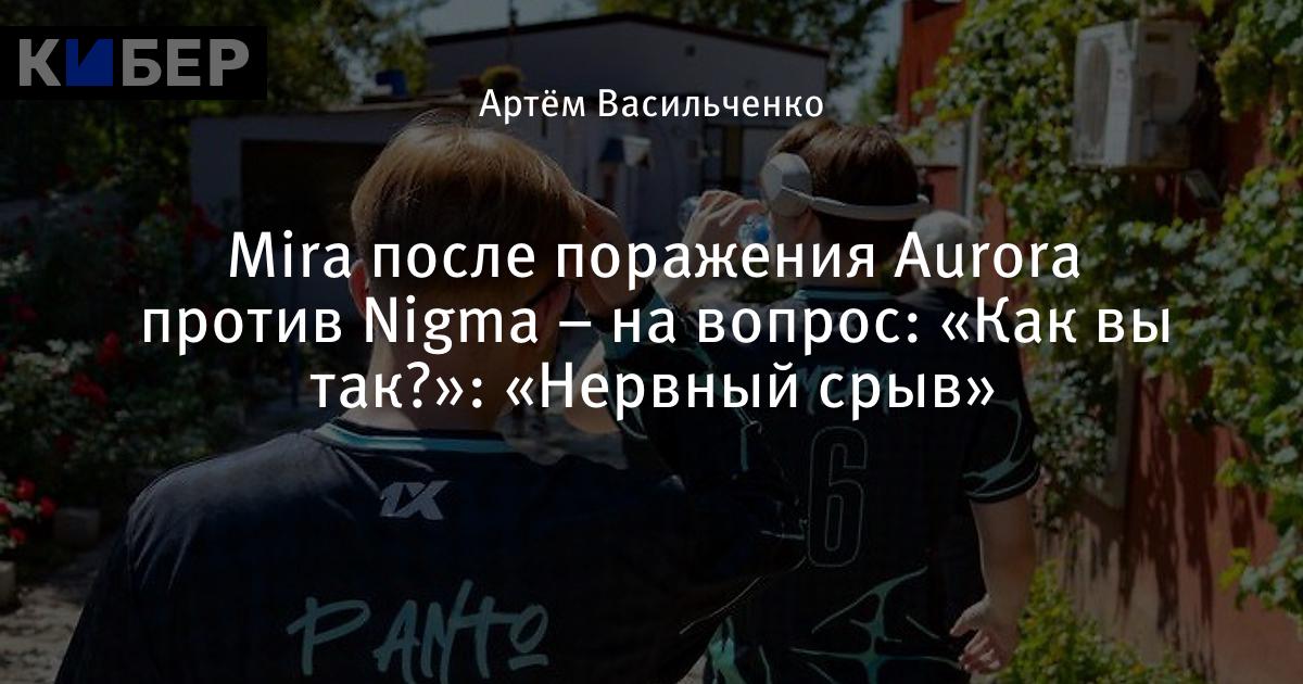 Mira после поражения Aurora против Nigma – на вопрос: «Как вы так?»: «Нервный срыв»