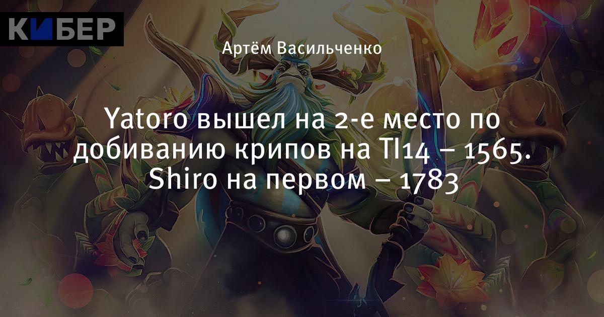 Yatoro вышел на 2-е место по добиванию крипов на TI14 – 1565. Shiro на первом – 1783