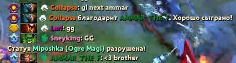 Коллапс пожелал Аммару удачи в общем чате после вылета с TI14. ATF ответил сердечком