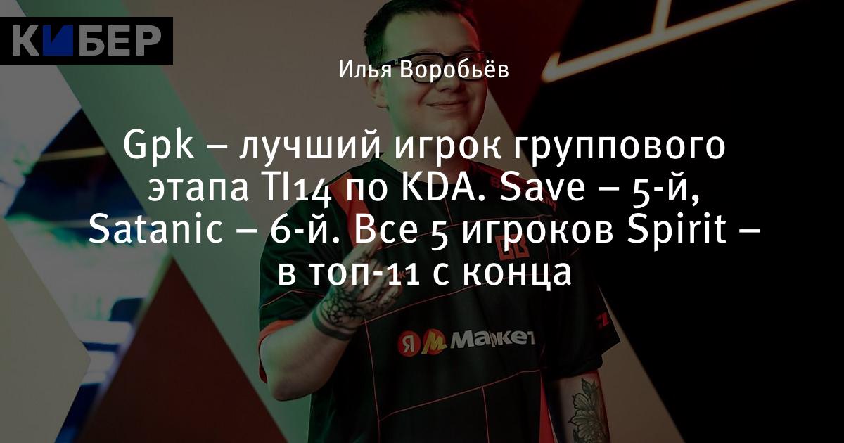 Gpk – лучший игрок группового этапа TI14 по KDA. Save – 5-й, Satanic – 6-й. Все 5 игроков Spirit – в топ-11 с конца