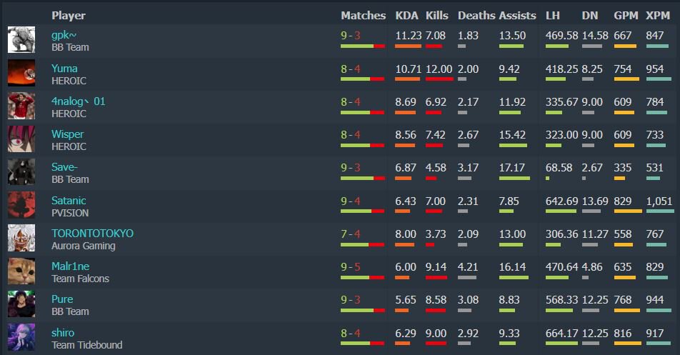 KDA Данила «Gpk» Скутина за 12 карт – 11,23. Следом расположились 3 игрока Heroic – Юма «Yuma» Ланглет (10,71), Жоао «4nalog» Джаннини (8,69) и Адриан Сеспедес «Wisper» Доблес (8,56).