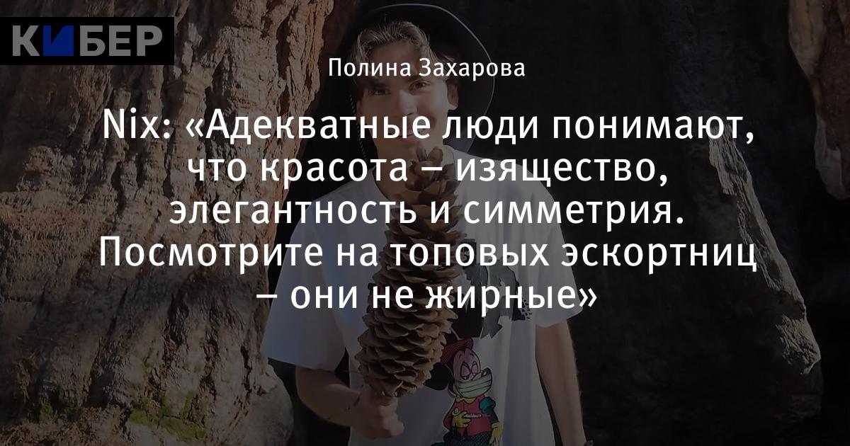 Nix: «Адекватные люди понимают, что красота – изящество, элегантность и симметрия. Посмотрите на топовых эскортниц – они не жирные»