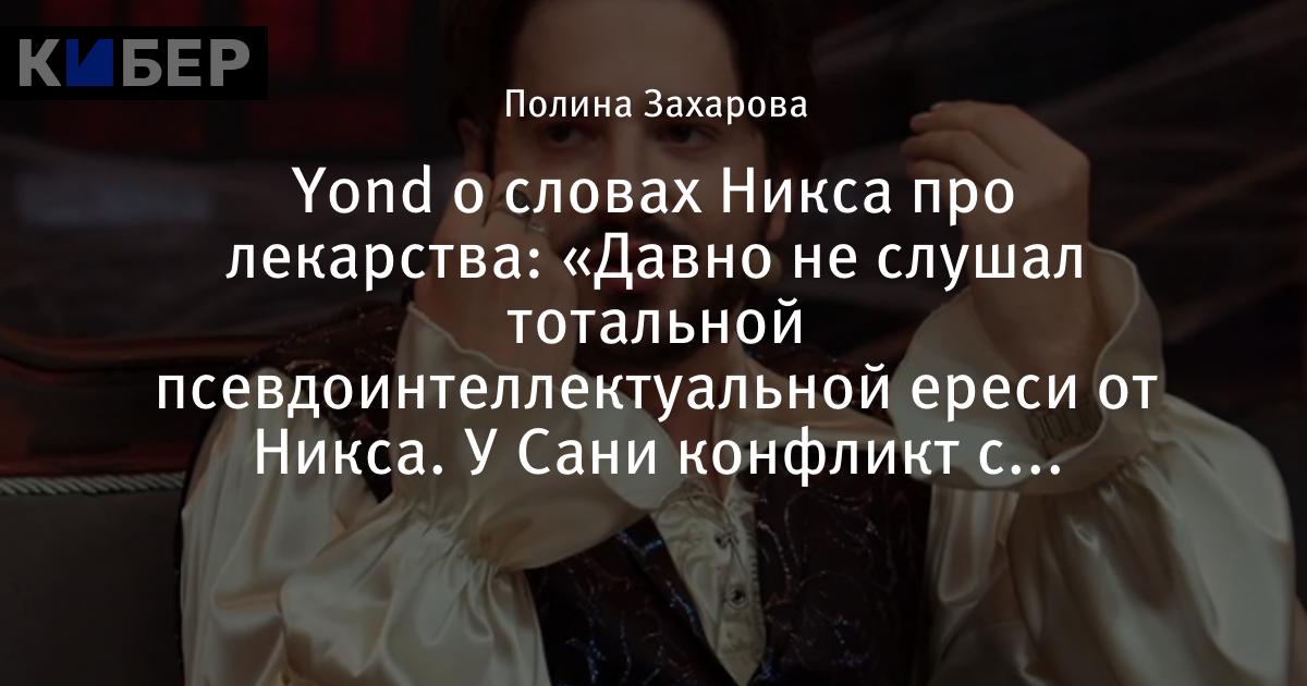 Y0nd о словах Никса про лекарства: «Давно не слушал тотальной псевдоинтеллектуальной ереси от Никса. У Сани конфликт с реальностью?»