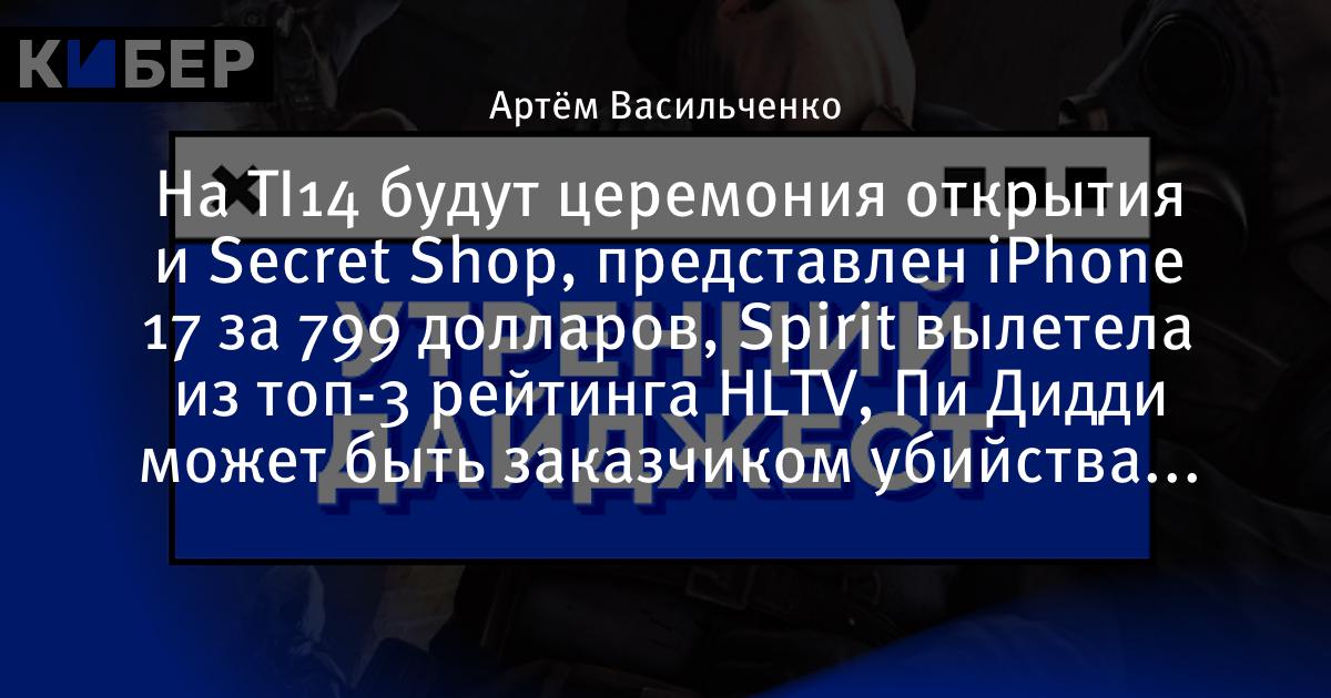 На TI14 будут церемония открытия и Secret Shop, представлен iPhone 17 за 799 долларов, Spirit вылетела из топ-3 рейтинга HLTV, Пи Дидди может быть заказчиком убийства Тупака и другие новости утра