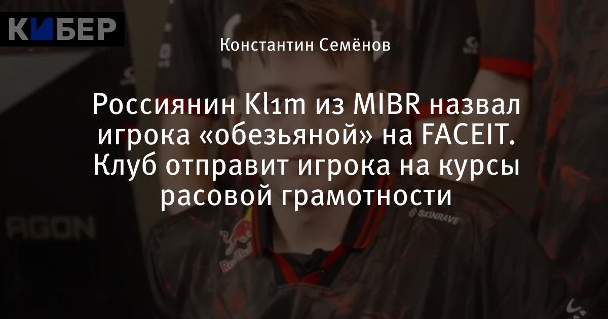 Россиянин Kl1m из MIBR назвал игрока «обезьяной» на FACEIT. Клуб отправит игрока на курсы расовой грамотности