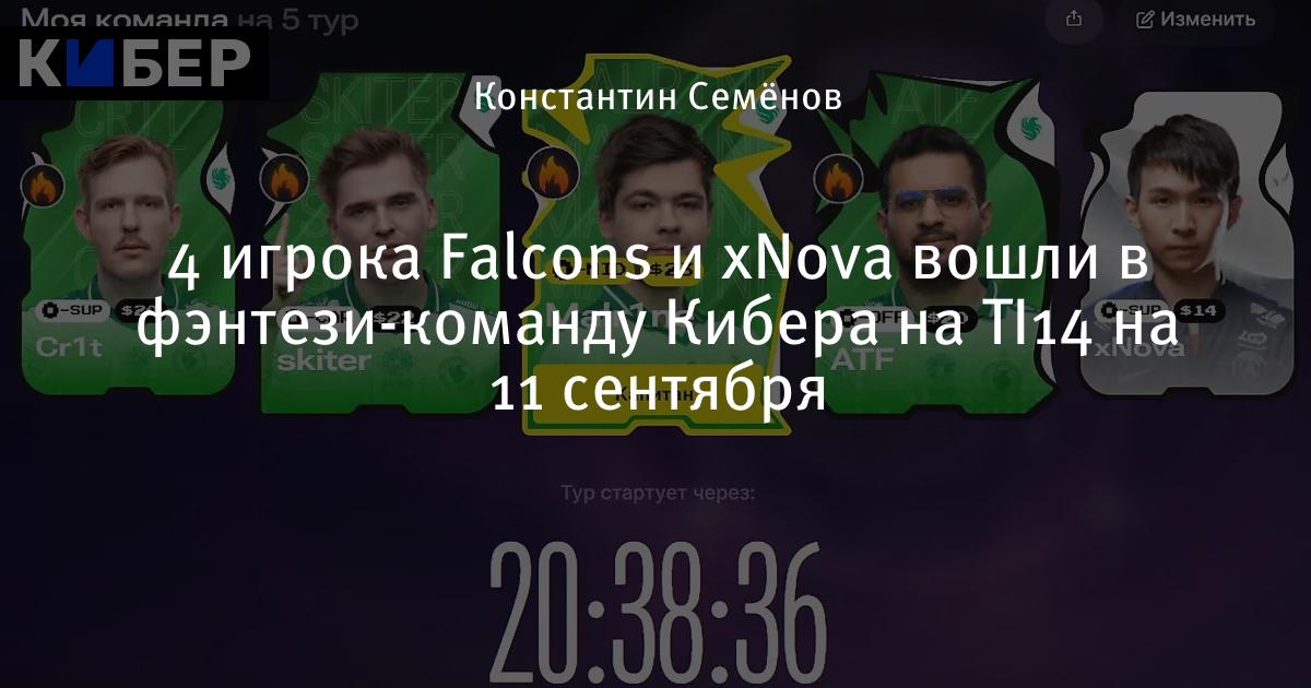 4 игрока Falcons и xNova вошли в фэнтези-команду Кибера на TI14 на 11 сентября