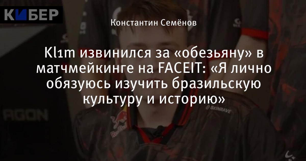 Kl1m извинился за «обезьяну» в матчмейкинге на FACEIT: «Я лично обязуюсь изучить бразильскую культуру и историю»