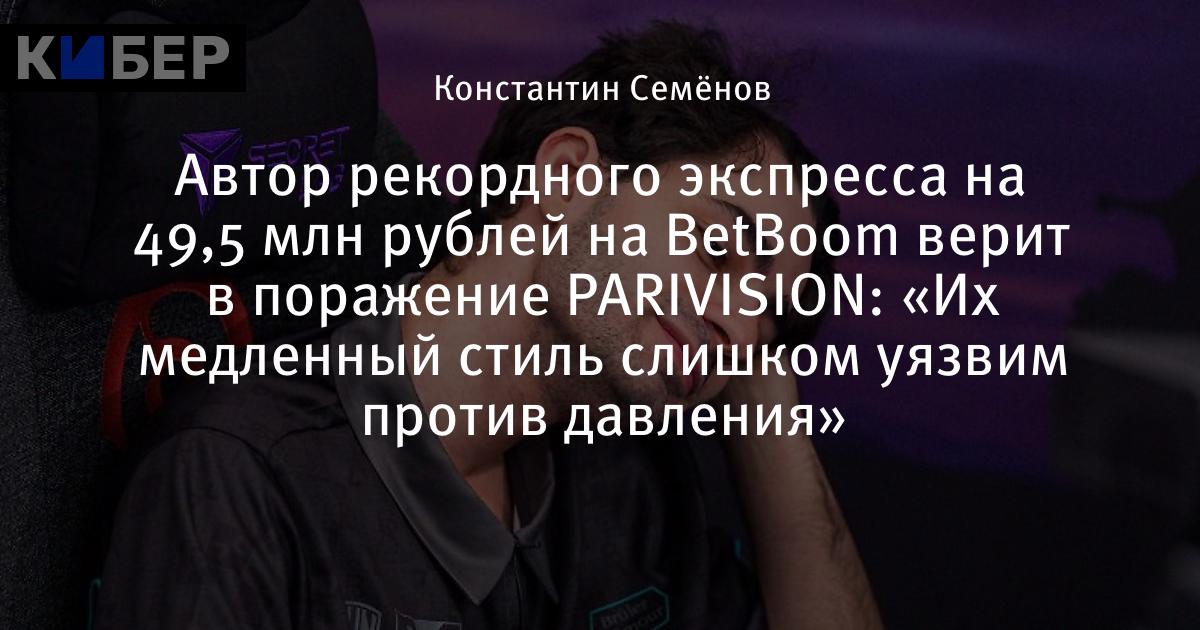 Автор рекордного экспресса на 49,5 млн рублей на BetBoom верит в поражение PARIVISION: «Их медленный стиль слишком уязвим против давления»