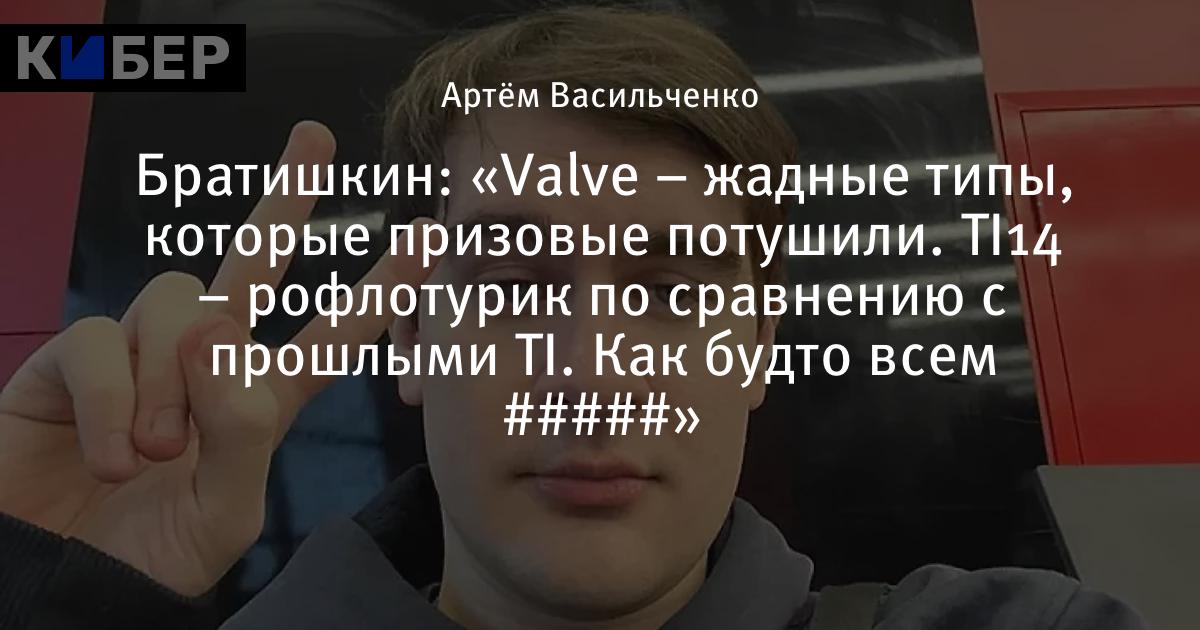 Братишкин: «Valve – жадные типы, которые призовые потушили. TI14 – рофлотурик по сравнению с прошлыми TI. Как будто всем #####»
