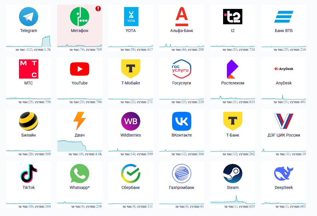 Россияне дальше сталкиваются с ошибкой интернета или сбоем некоторых интернет-сервисов. По состоянию на утро, 12 сентября, больше всего жалоб поступает от абонентов «Мегафона», t2 и МТС. Также проблемы испытывают абоненты провайдеров Yota и «Ростелеком».