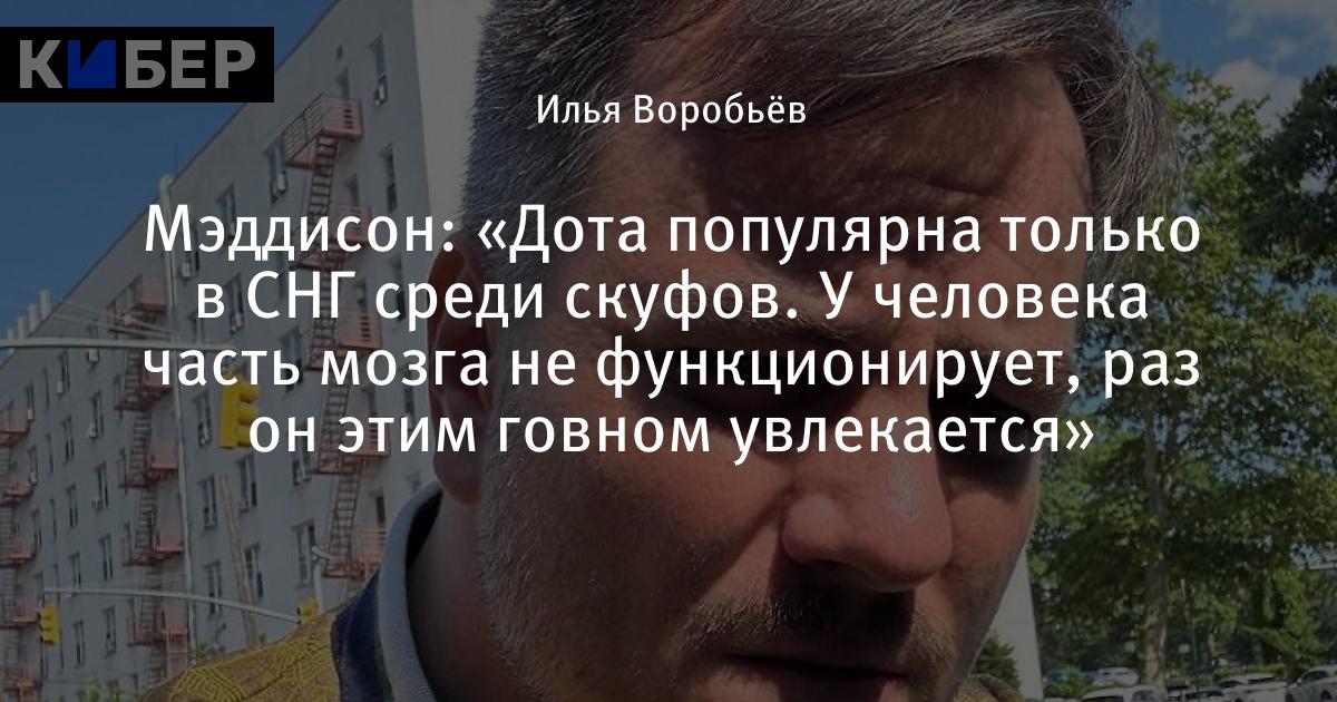 Мэддисон: «Дота популярна только в СНГ среди скуфов. У человека часть мозга не функционирует, раз он этим говном увлекается»